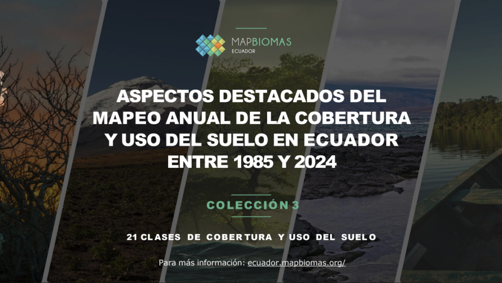 Descargue el documento que recoge los principales aspectos de los datos de los mapas de uso y cobertura del suelo de la Colección 3.0 MapBiomas Ecuador. Acceda al reporte en cifras de la Colección 3.0 de MapBiomas Ecuador