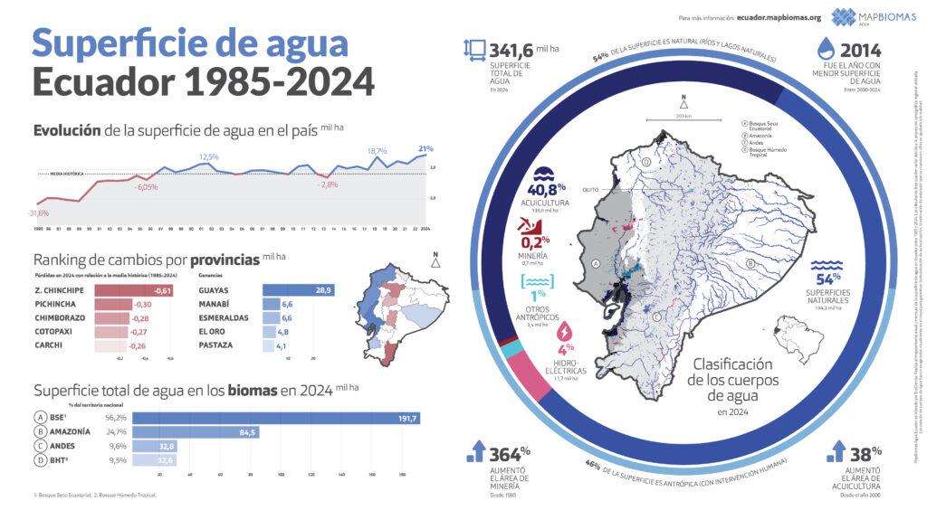 Descargue aquí las infografías de la Colección 2 de MapBiomas Ecuador Água: